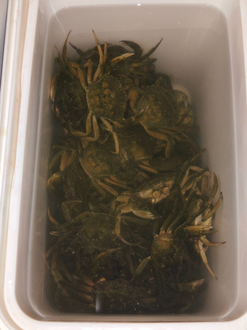 Technique : 40 Crabes Verts x 6 cms (Dimension de chaque carapace) = 240 cms. Crabes ramassés à l'épuisette.