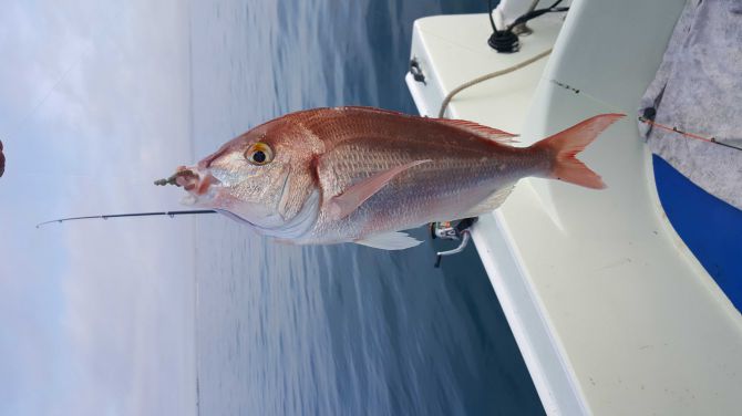 Commentaire : En mer, vent 3/6 noeuds, profondeur 18m. En derive avec une canne a dorade 2m40 un bas de ligne en 0.2 et dure rouge en appatPoids 1kg05