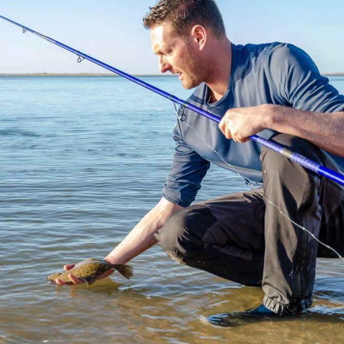 La sortie test (fils et chariots de pêche) de la semaine dernière s'est bien déroulée. Jonathan en profite pour relâcher ce Flet. ??‍♂️
